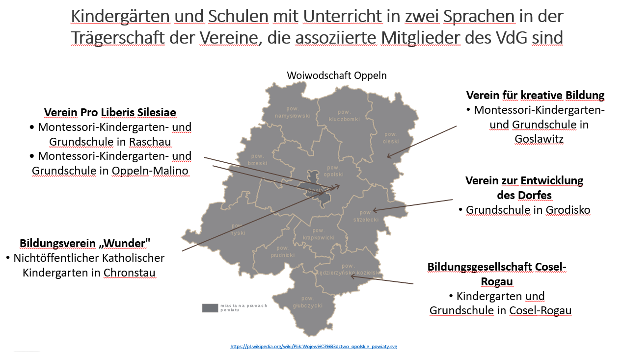 właśnie stoicie przed wyborem odpowiedniej placówki edukacyjnej dla Waszych dzieci. Zachęcamy do zapoznania się z ofertą szkół stowarzyszeniowych, które współpracują z mniejszością niemiecką, oferują i promują nauczanie w dwóch językach – polskim i niemieckim oraz pomagają dzieciom w zdobywaniu wielu kompetencji potrzebnych do funkcjonowania w społeczeństwie wielokulturowym.