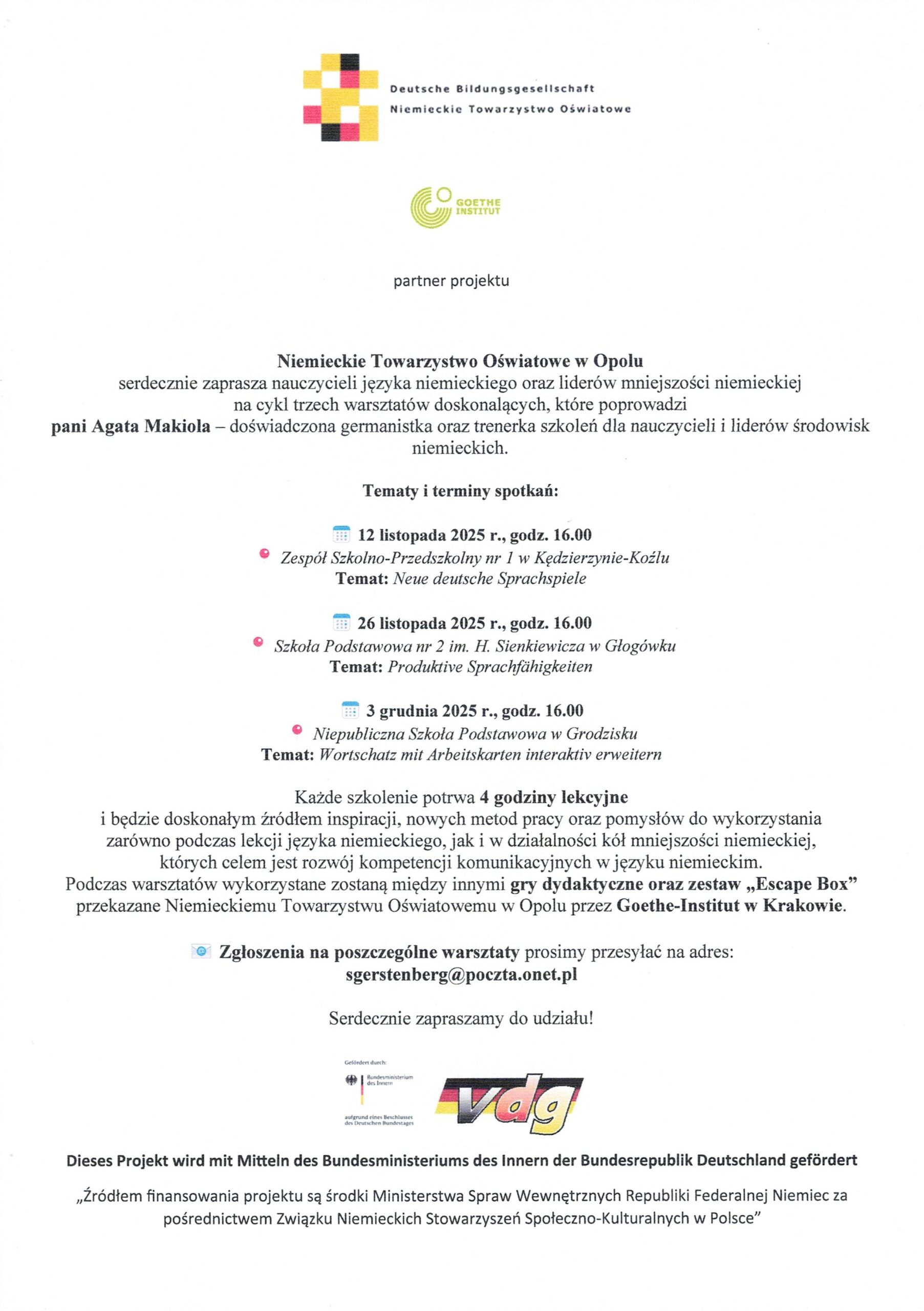 Warsztaty Niemieckiego Towarzystwa Oświatowego dla nauczycieli
